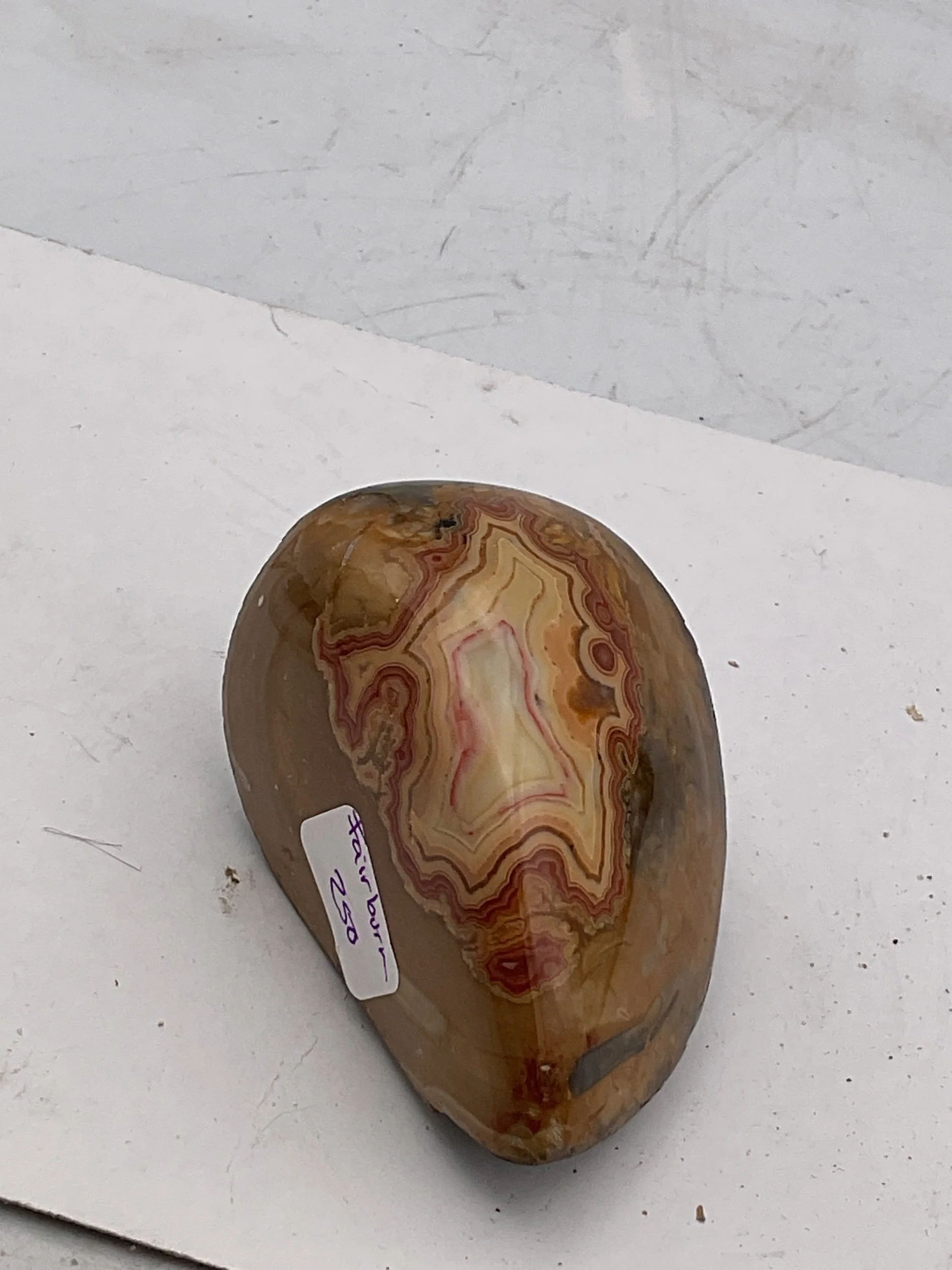 Rocks Slabs and Specimens › Fairburn agate Image 1 of 5 Image 2 of 5 Image 3 of 5 Image 4 of 5 Image 5 of 5 Fairburn agate $250.00 polished rare agate. 2.75 x 1.75 x 1.5 inches. 6.5 oz Add To Cart Added! polished rare agate. 2.75 x 1.75 x 1.5 inches. 6.5 oz Reviews Reviewer Name Review Date Star Rating Description Posted on Etsy Product Show More
