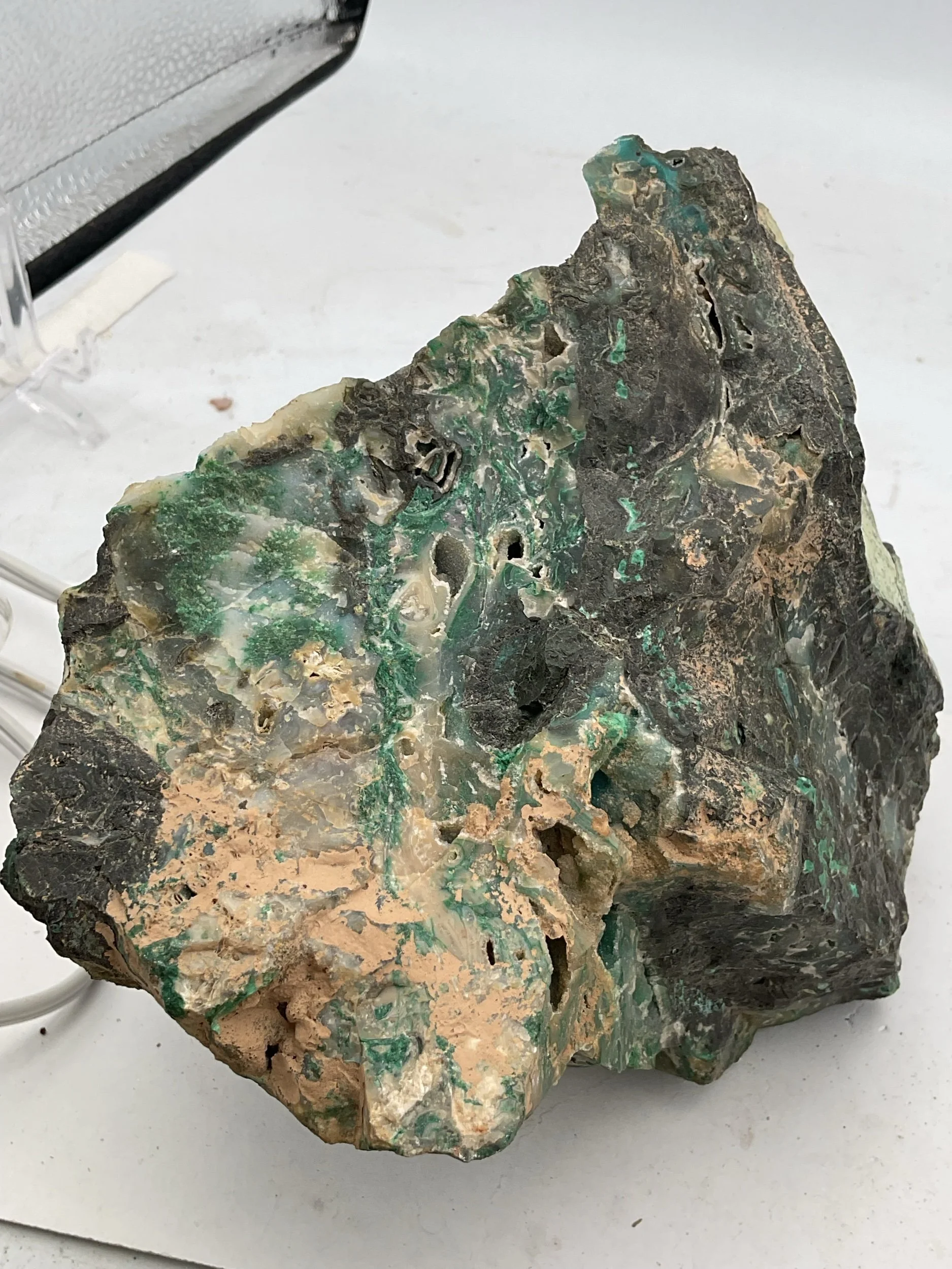 Rocks Slabs and Specimens › Gem Silica Chrysacolla Image 1 of 5 Image 2 of 5 Image 3 of 5 Image 4 of 5 Image 5 of 5 Gem Silica Chrysacolla $1,000.00 unpolished rough, 5.5 x 3.5 x 5 inches, 4 lb 11 oz Add To Cart Added! unpolished rough, 5.5 x 3.5 x 5 inches, 4 lb 11 oz Reviews Reviewer Name Review Date Star Rating Description Posted on Etsy Product Show More